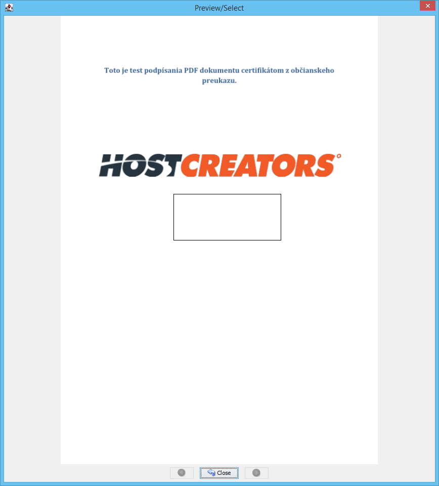 Po kliknutí na tlačítko Podpísať sa Vás program spýta kam má nový PDF súbor s podpisom uložiť. Ak je certifikát zabezpečený, je potrebné ešte zadať PIN kód alebo heslo k certifikátu. Výsledný PDF dokument následne obsahuje informáciu o elektronikom podpise a priamo v dokumente sa vo vybratej oblasti zobrazia dodatočné informácie o podpise s vloženým logom.: