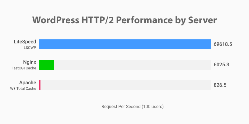 Porovnanie výkonu WordPress stránky s použitím LSCache (graf je zo stránky www.litespeedtech.com) s ostatnými web servermi: