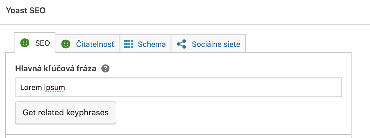 Nadpis SEO sa skladá spravidla z nadpisu článku/stránky, oddeľovača a názvu web stránky. Toto zobrazenie si však môžete zmeniť v nastaveniach pluginu. Nižšie sa nachádza panel. Ak je SEO nadpis priemerný, je oranžový, ak dlhý, je červený. Správny nadpis by mal mať zelenú farbu.