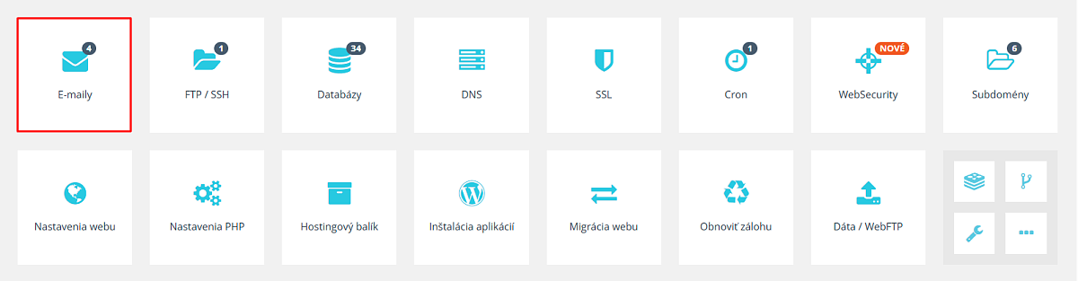 Vo Webadmine prejdite do Vašej domény a kliknite na sekciu "E-maily".