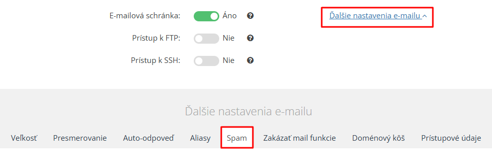 - Kliknite na "Spam". Tu si môžete nastaviť:
