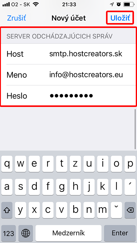 - Host: pop3.hostcreators.sk (alebo imap.hostcreators.sk)
