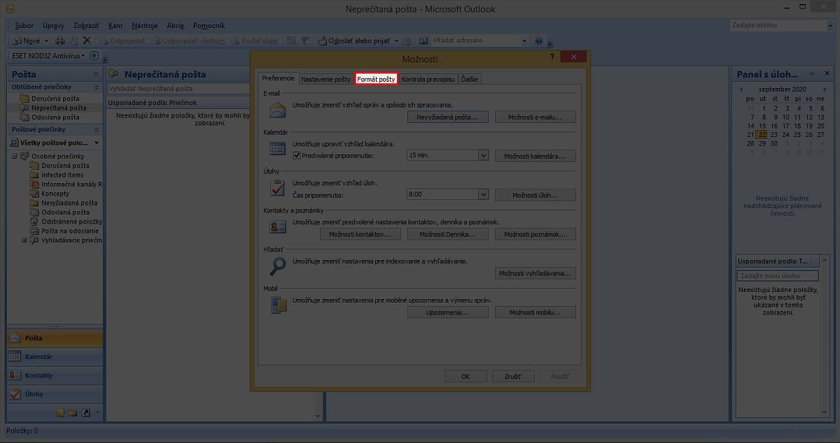 Otvorí sa Vám nové okno. V hornom panely vyberte záložku "Formát pošty".