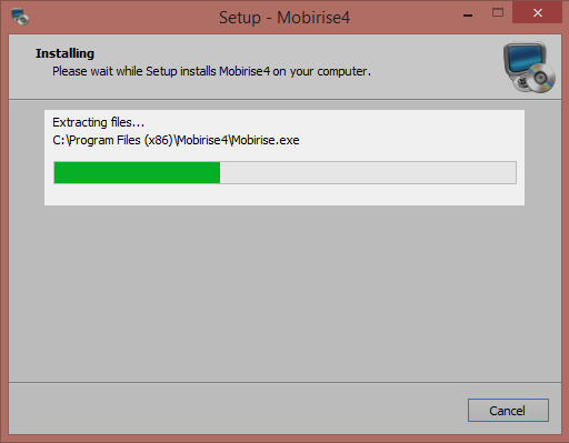 - Inštaláciu aplikácie v otvorenom priečinku spustíte dvojitým kliknutím na súbor Mobirise4-setup.exe