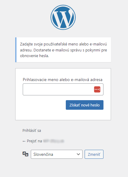 Druhý spôsob, kedy viete zmeniť heslo len pre svojho užívateľa je priamo cez formulár na nazov-domeny.sk/wp-login.php?action=lostpassword.