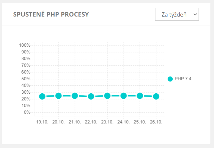 Ak využívate pri doménach a subdoménach umiestnených v hostingovom balíku rôzne verzie PHP, v tomto grafe sa budú zbrazovať v rôznych farbách, vďaka čomu je graf prehľadný a dokážete sa v ňom bezproblémov orientovať.